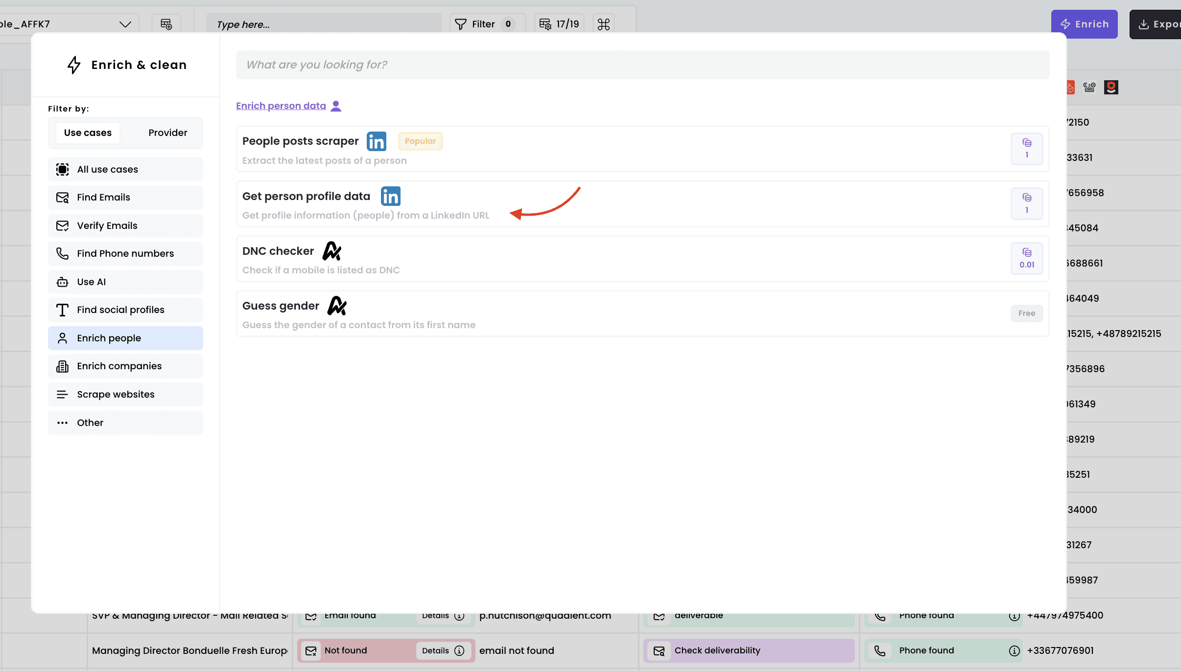 Note: the required input to enrich a profile is a LinkedIn profile URL