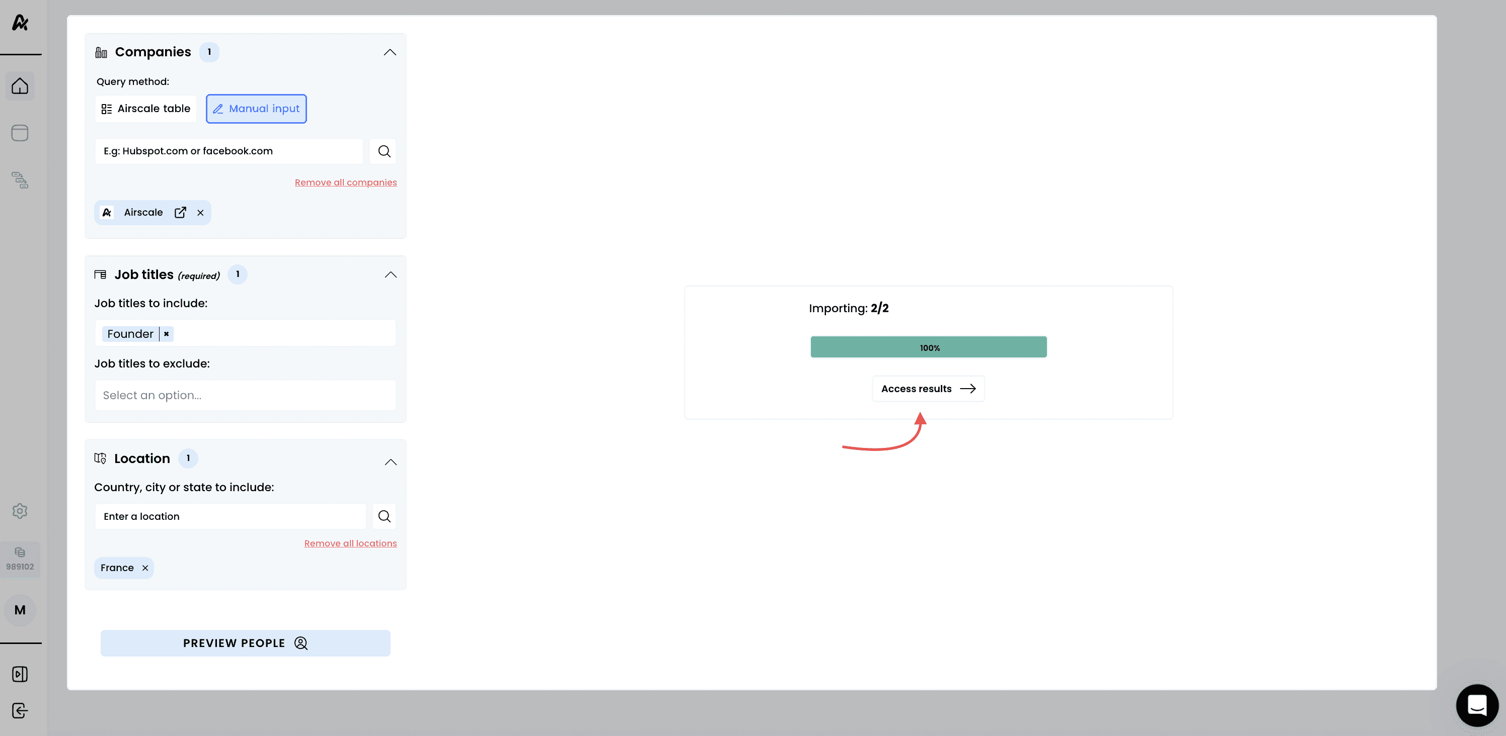 Note: ensure the preview shows relevant prospects before importing. Poor preview results indicate filters need adjustment