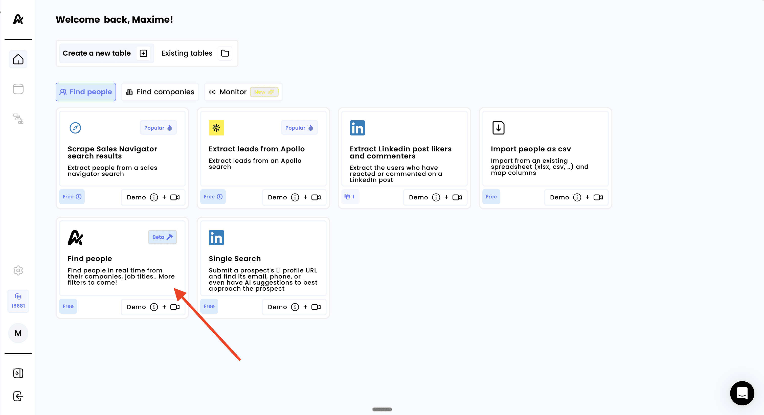 Select "Find people" from the available modules (look for the Airscale logo icon)