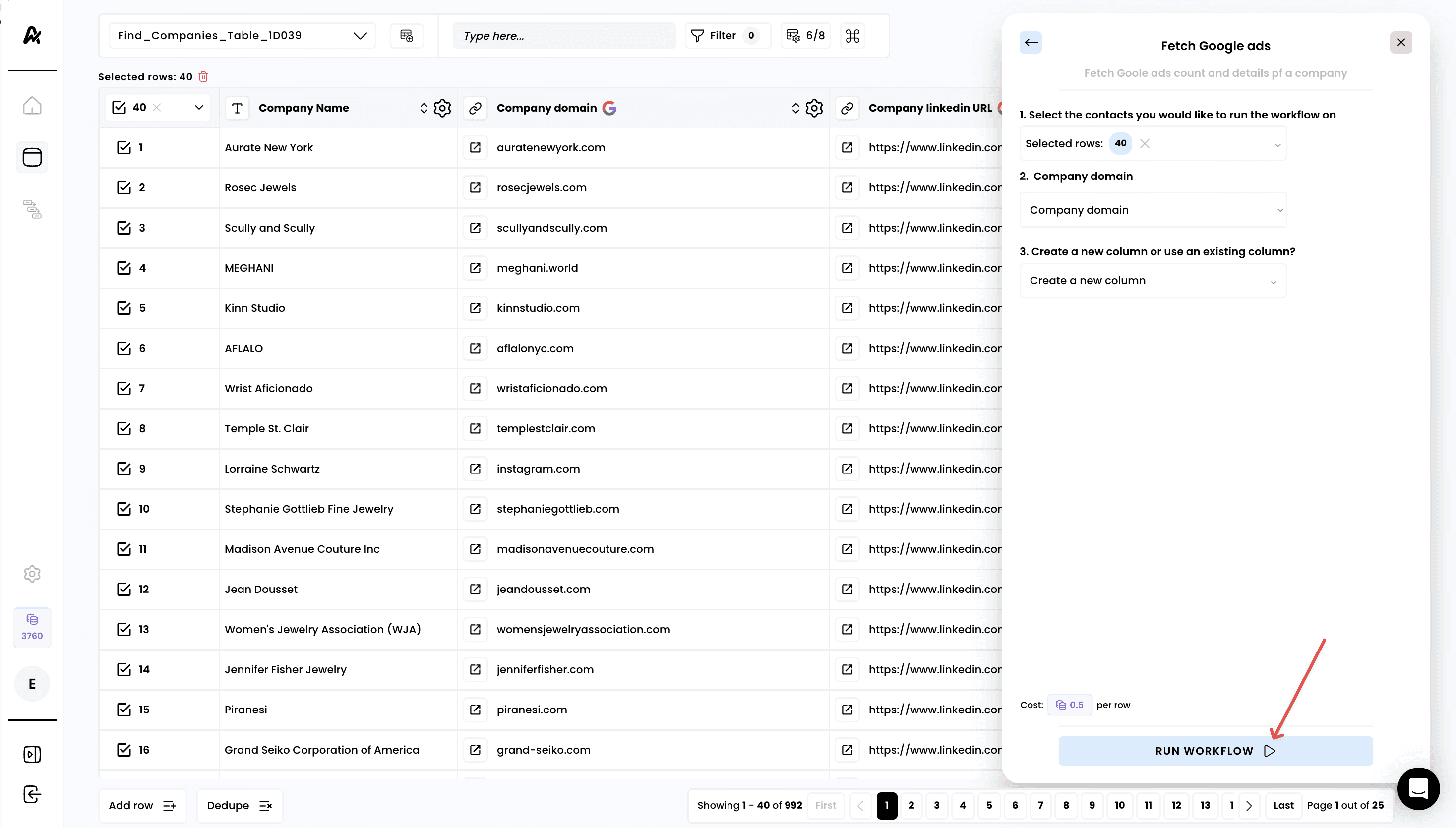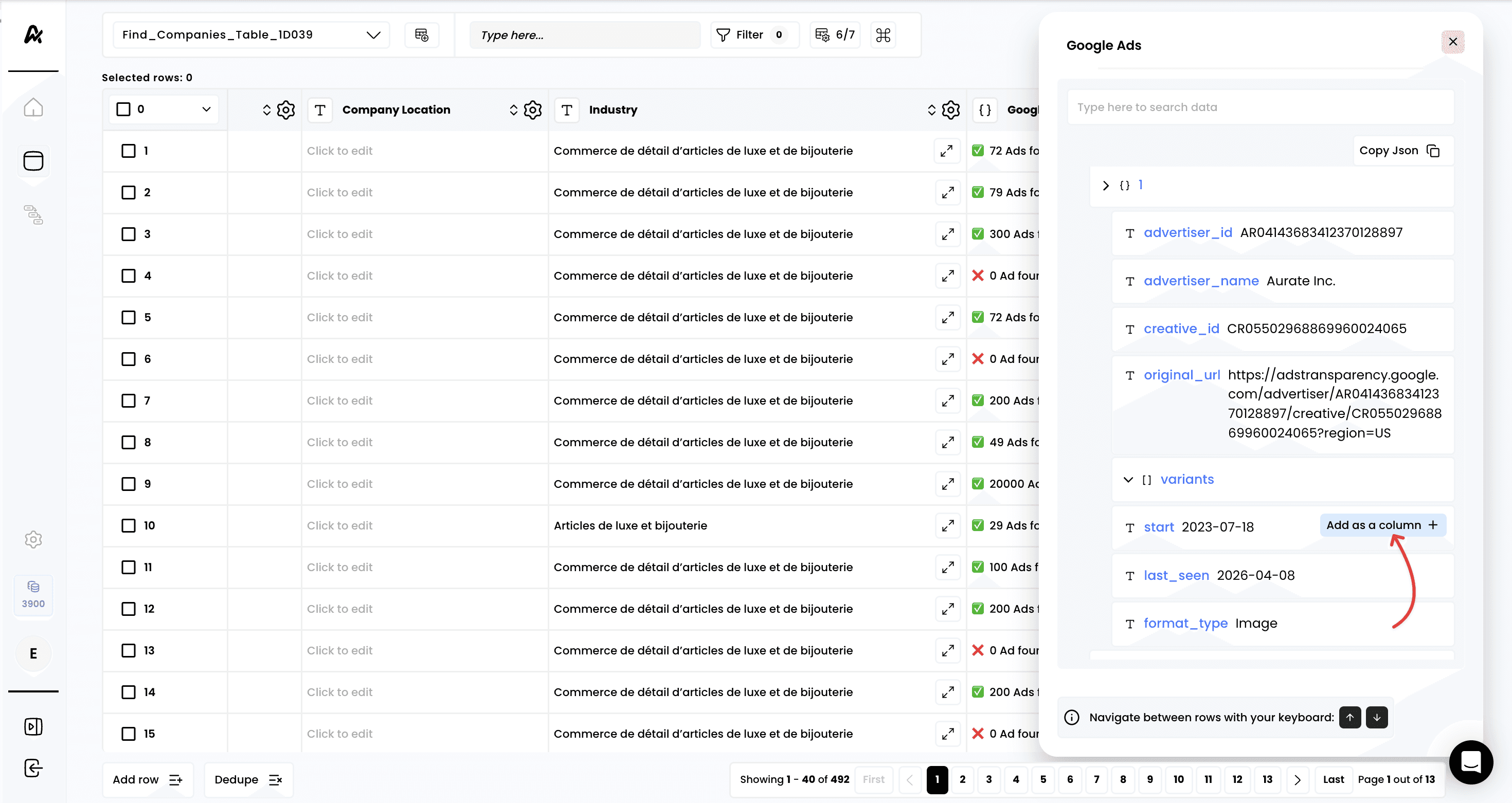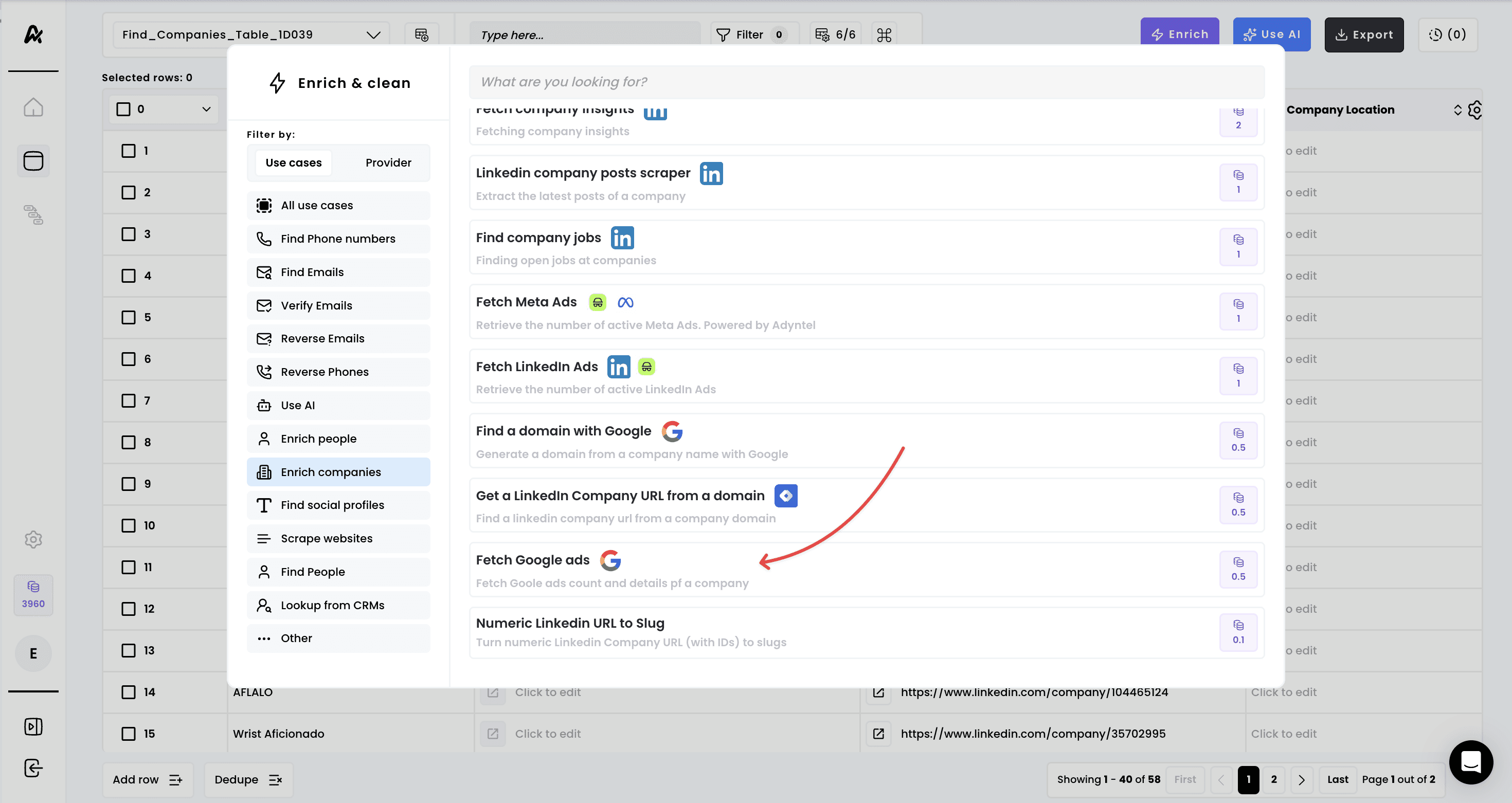 Retrieve all active Google ads running for any company directly from Airscale's Google Ads enrichment