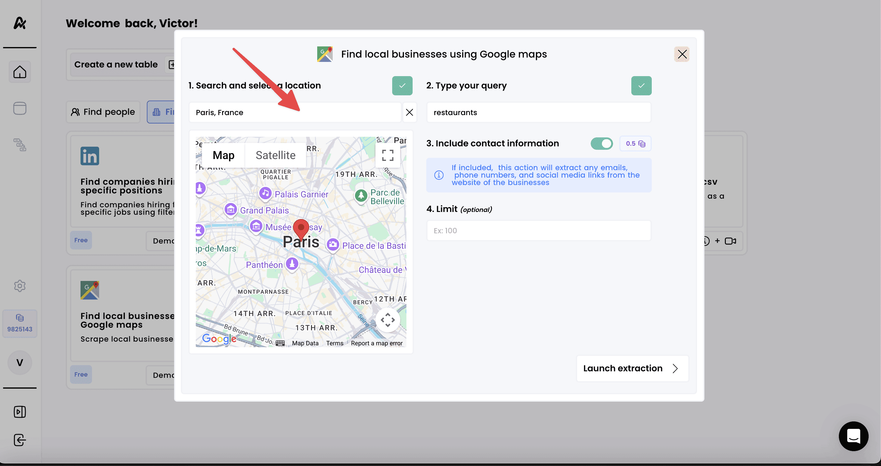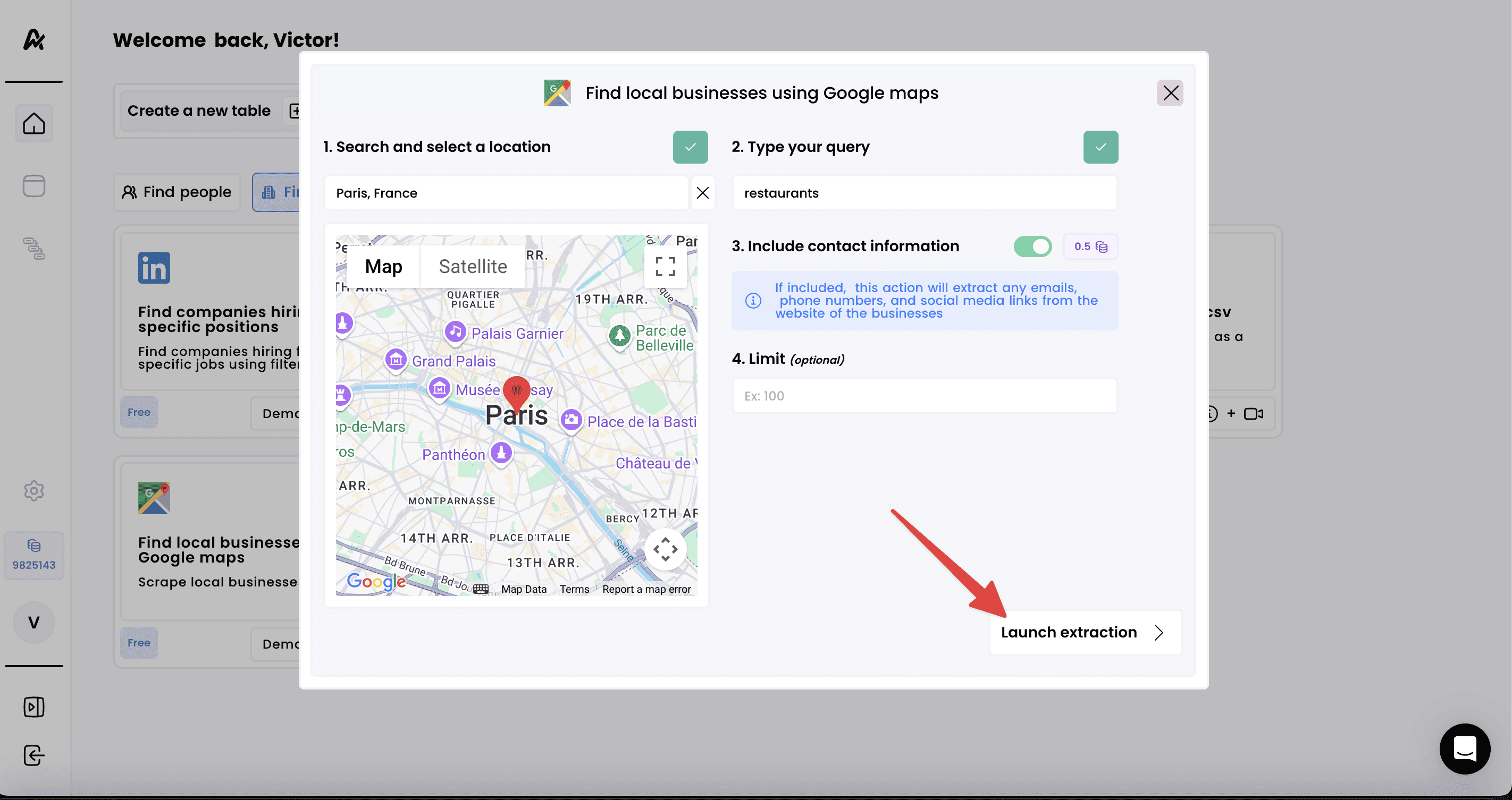 3. Launch the extraction and access your results