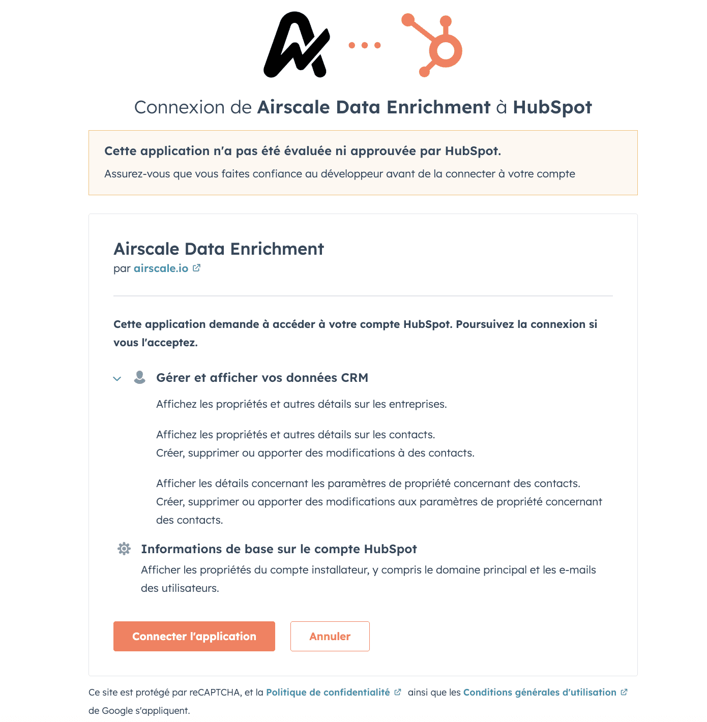 Select your HubSpot account: you'll be redirected to HubSpot. Select the HubSpot account where you want to install Airscale.