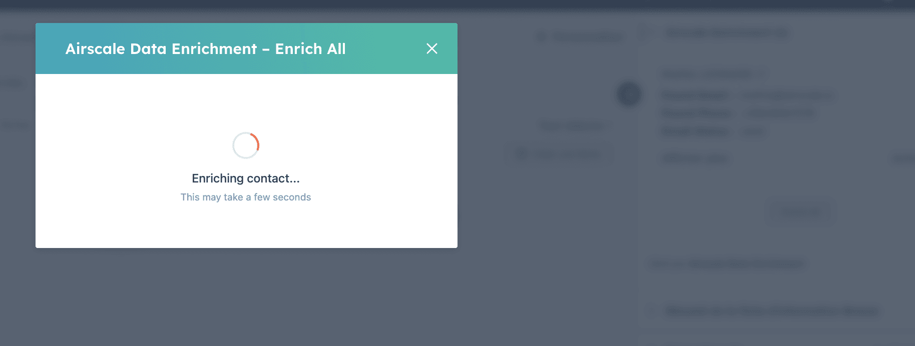 Click Enrich All (a modal opens with a spinner: "Enriching contact...").