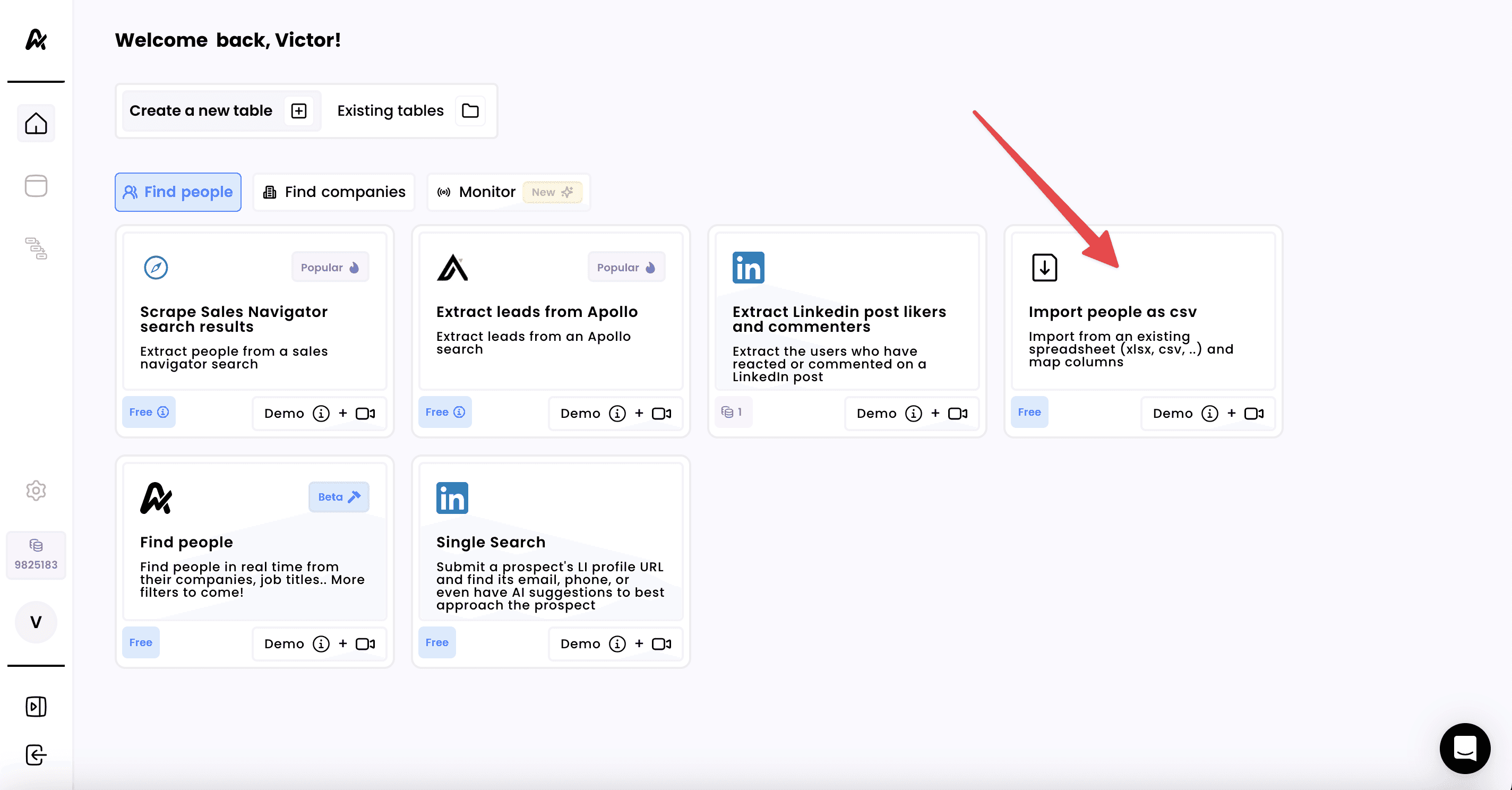 1. Click on "Import as a CSV"