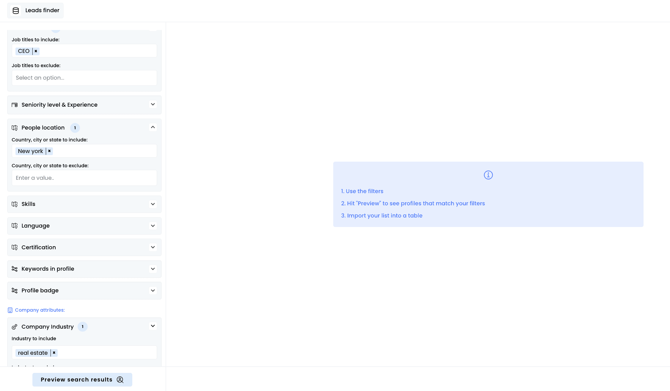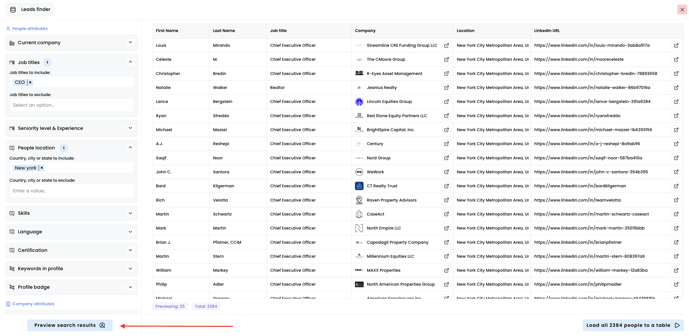 Note: ensure the preview shows relevant prospects before importing. Poor preview results indicate filters need adjustment