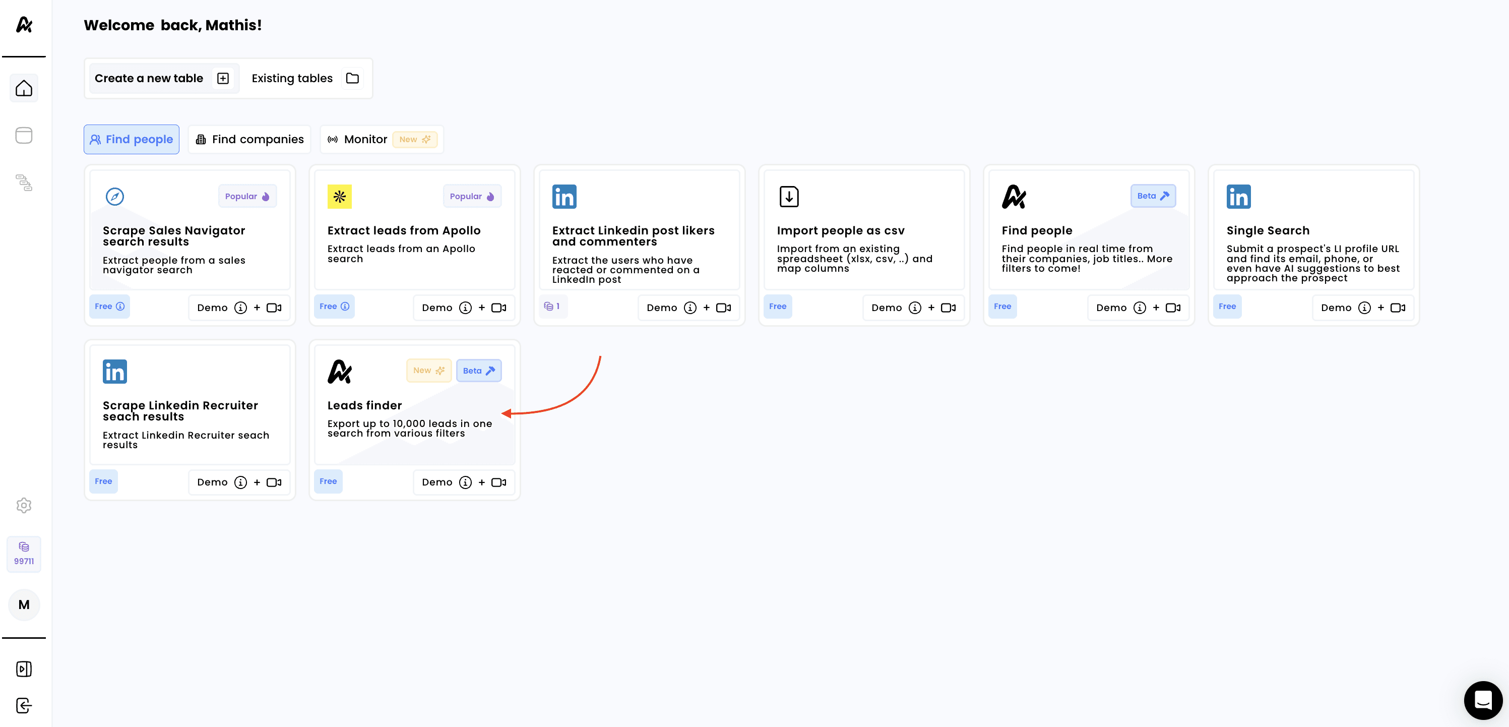 Select "Leads finder" from the available modules (look for the Airscale logo icon)