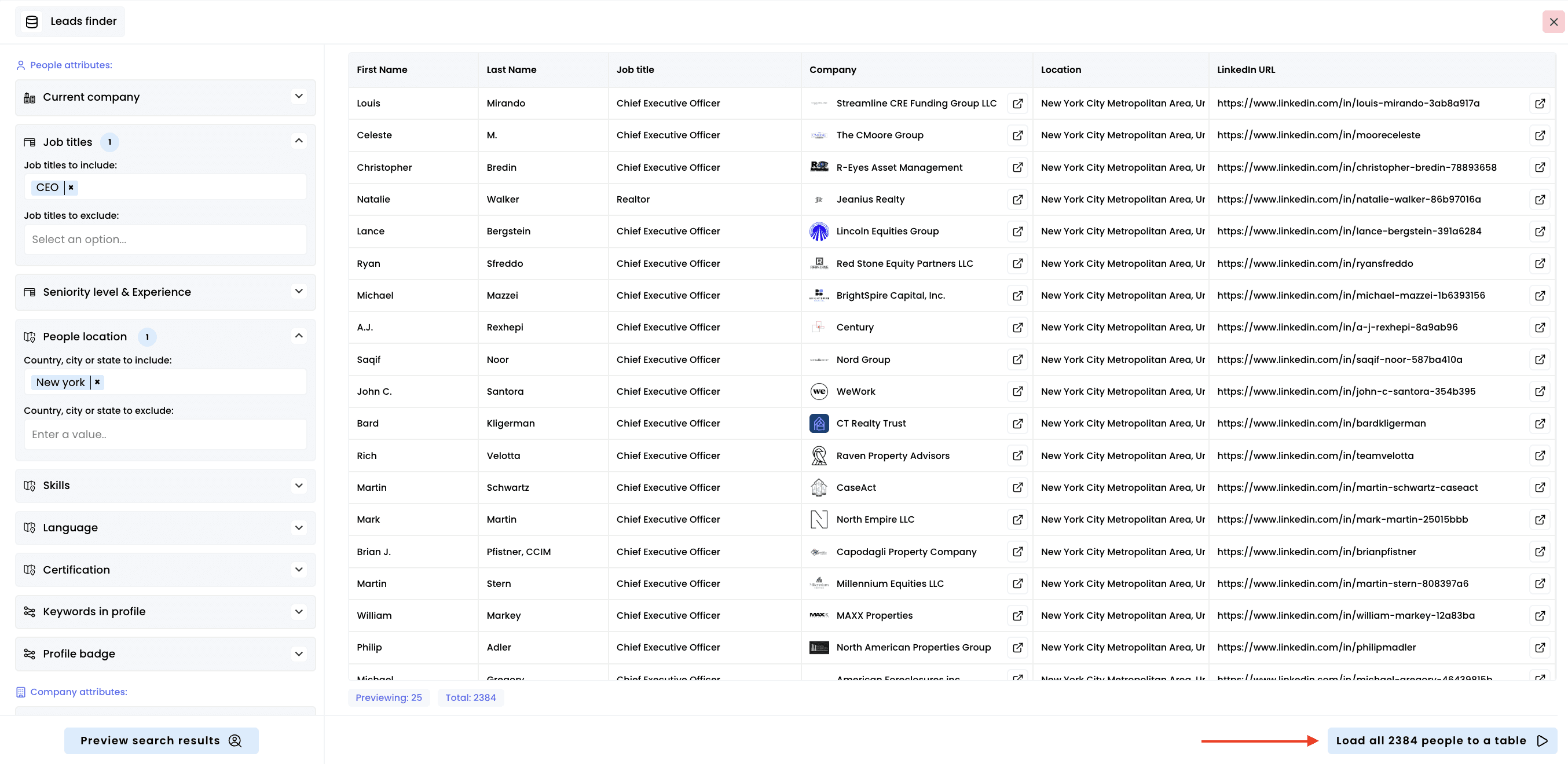 Note: the system automatically stops at 10,000 results even if more matches exist. Use more specific filters if you hit this limit and want different prospects