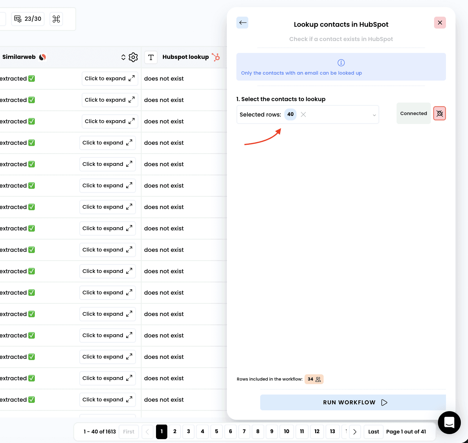 Lookup contacts in Hubspot