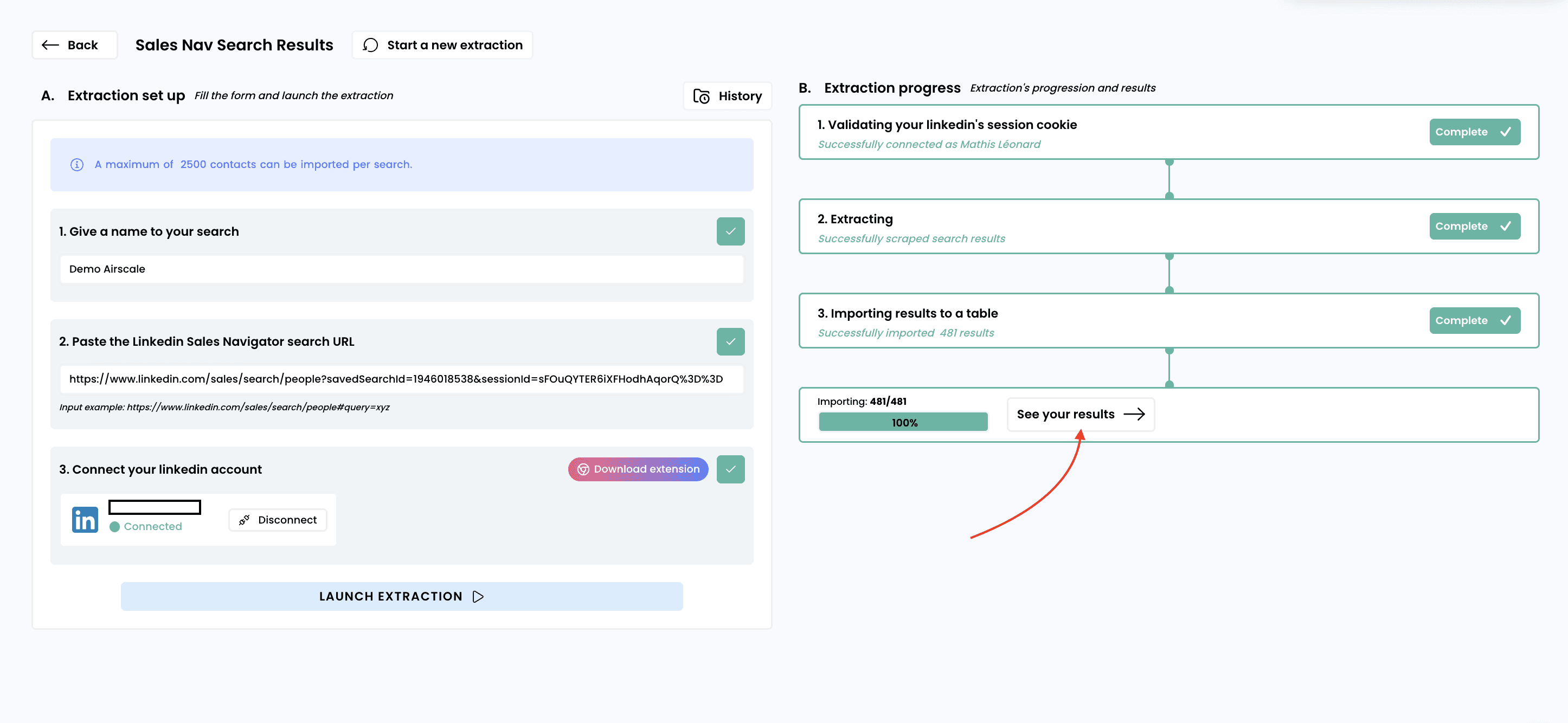 Download the Airscale Chrome extension if you haven't already here or directly with the link on the extraction page