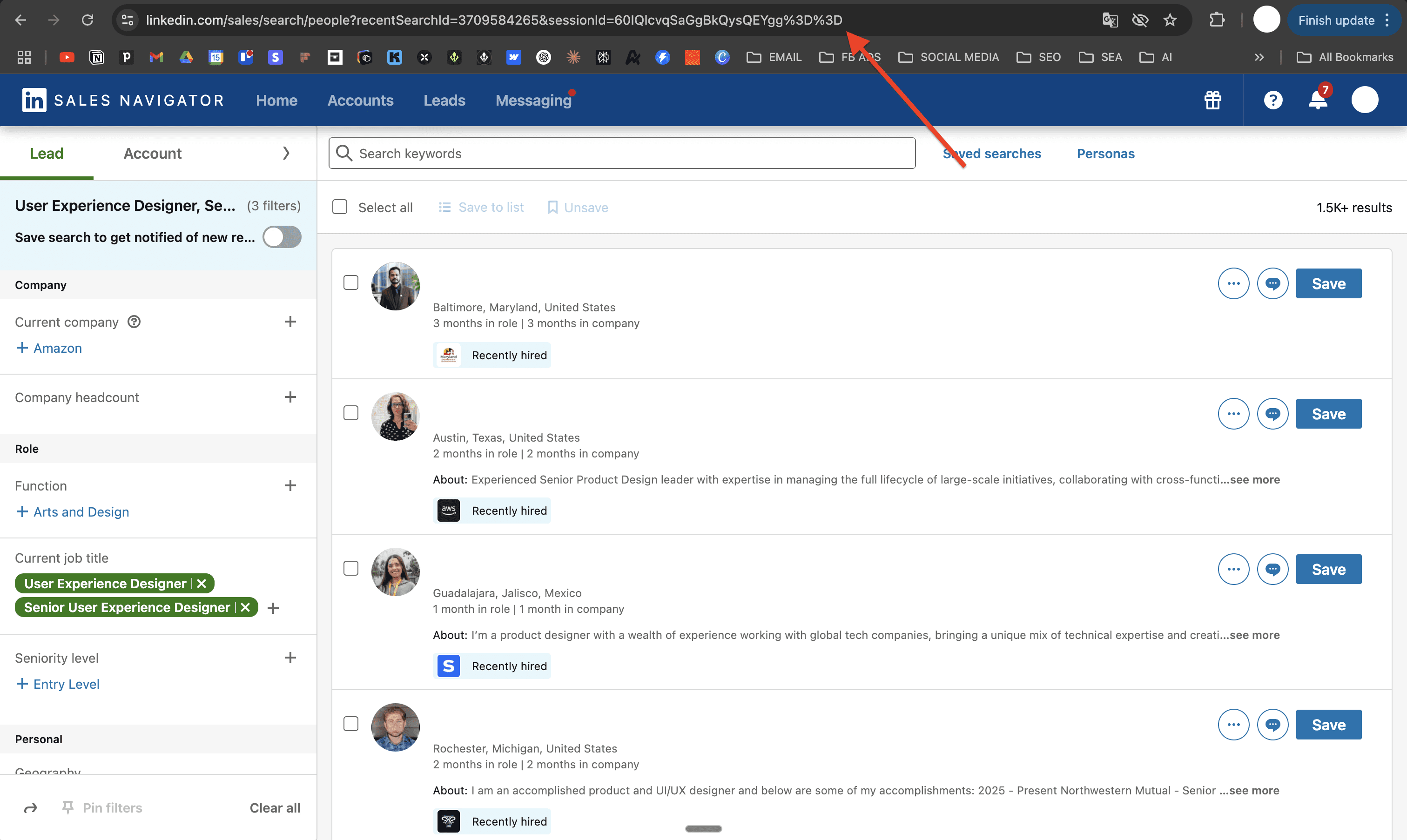 Apply your target filters (job titles, company size, industry, location, etc.)